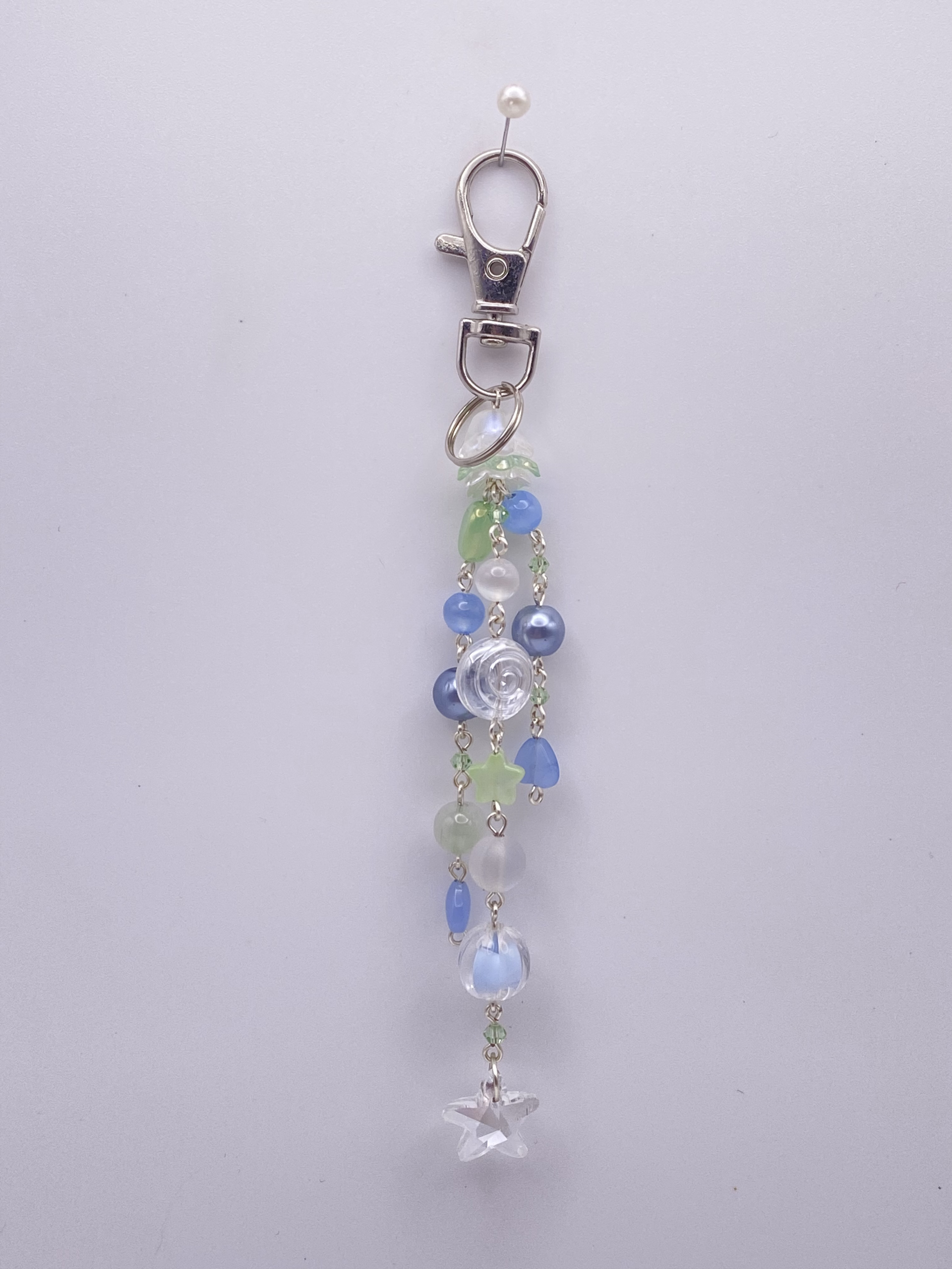 Lobster keychain clasp Comes with key ring Glass and plastic beads ~5 in. long