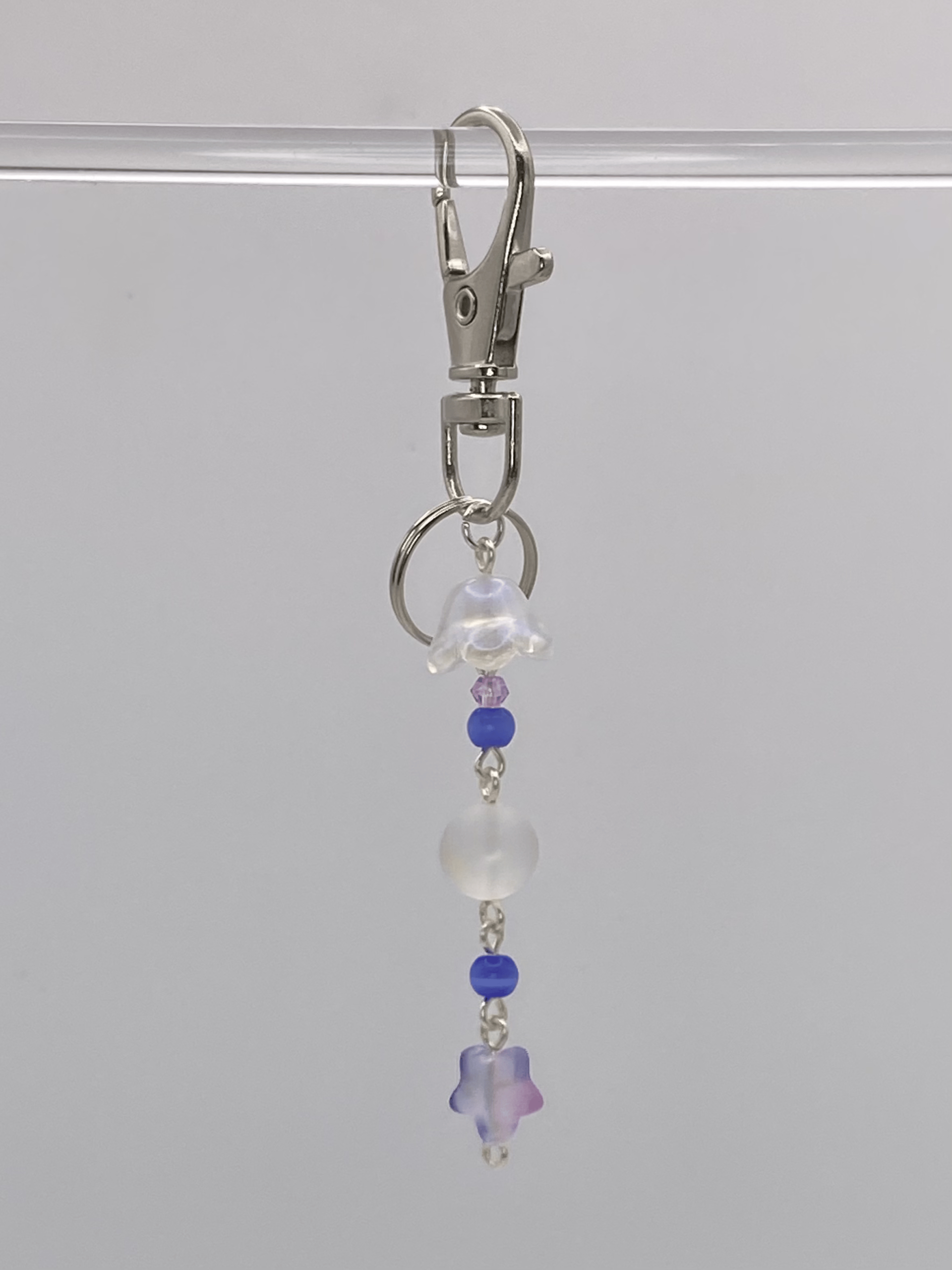 Lobster keychain clasp Comes with key ring Glass and plastic beads ~3 in. long