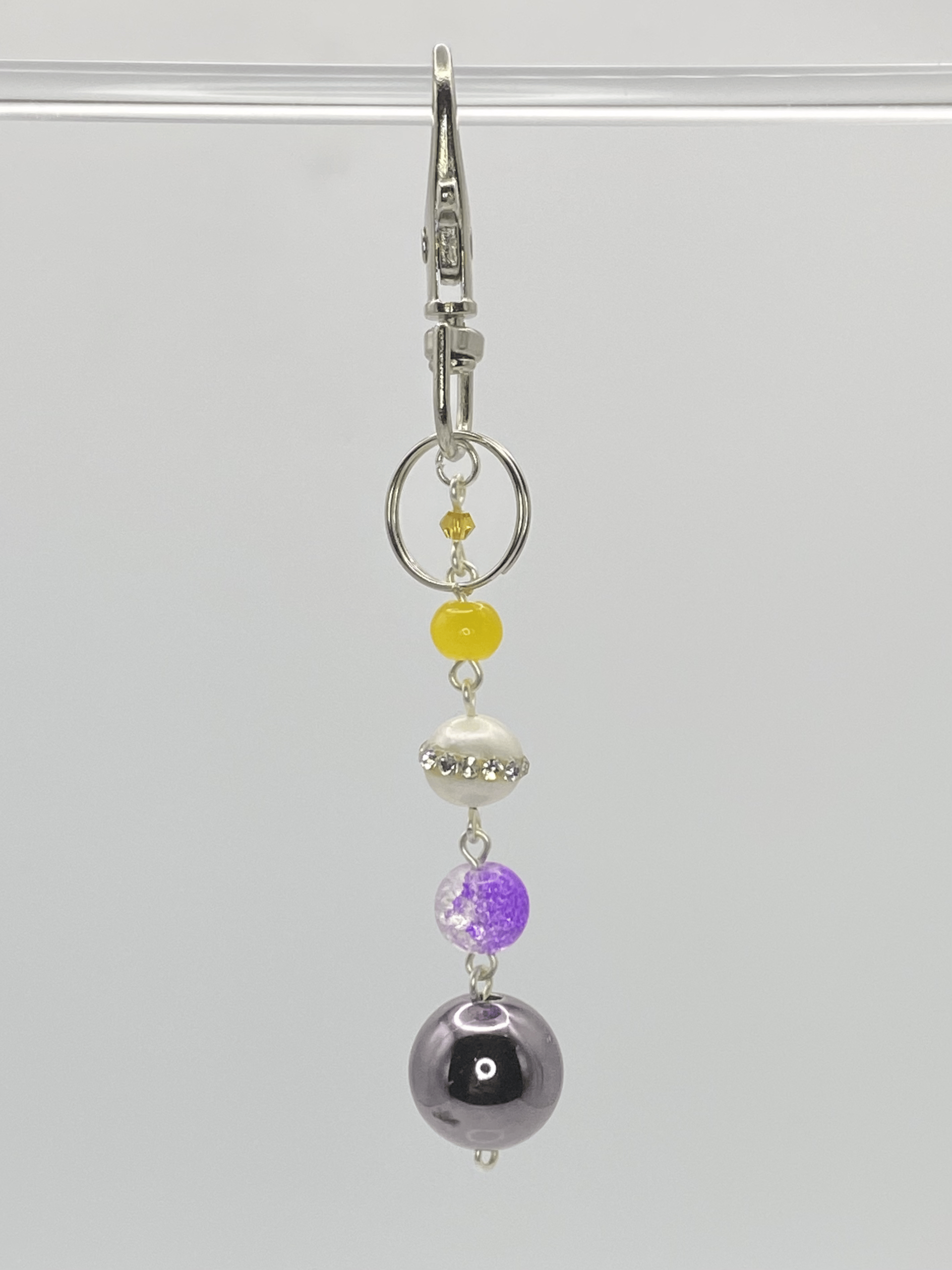 Lobster keychain clasp Comes with key ring Glass and plastic beads ~3 in. long