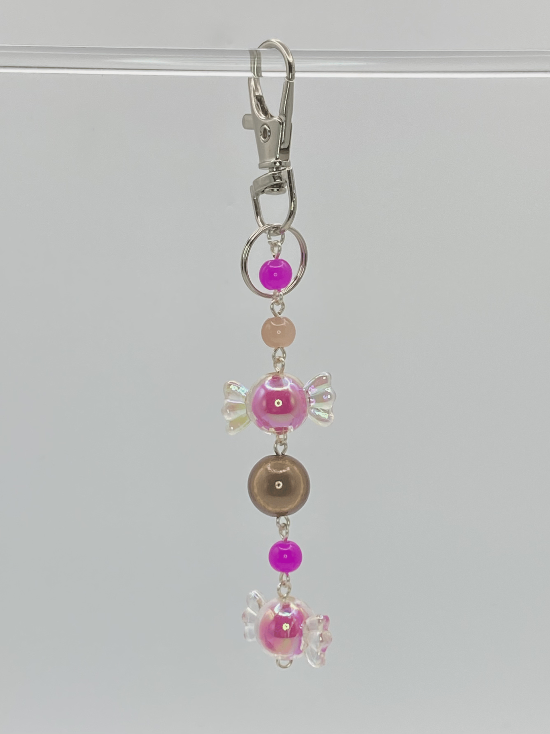 Lobster keychain clasp Comes with key ring Glass and plastic beads ~3 in. long