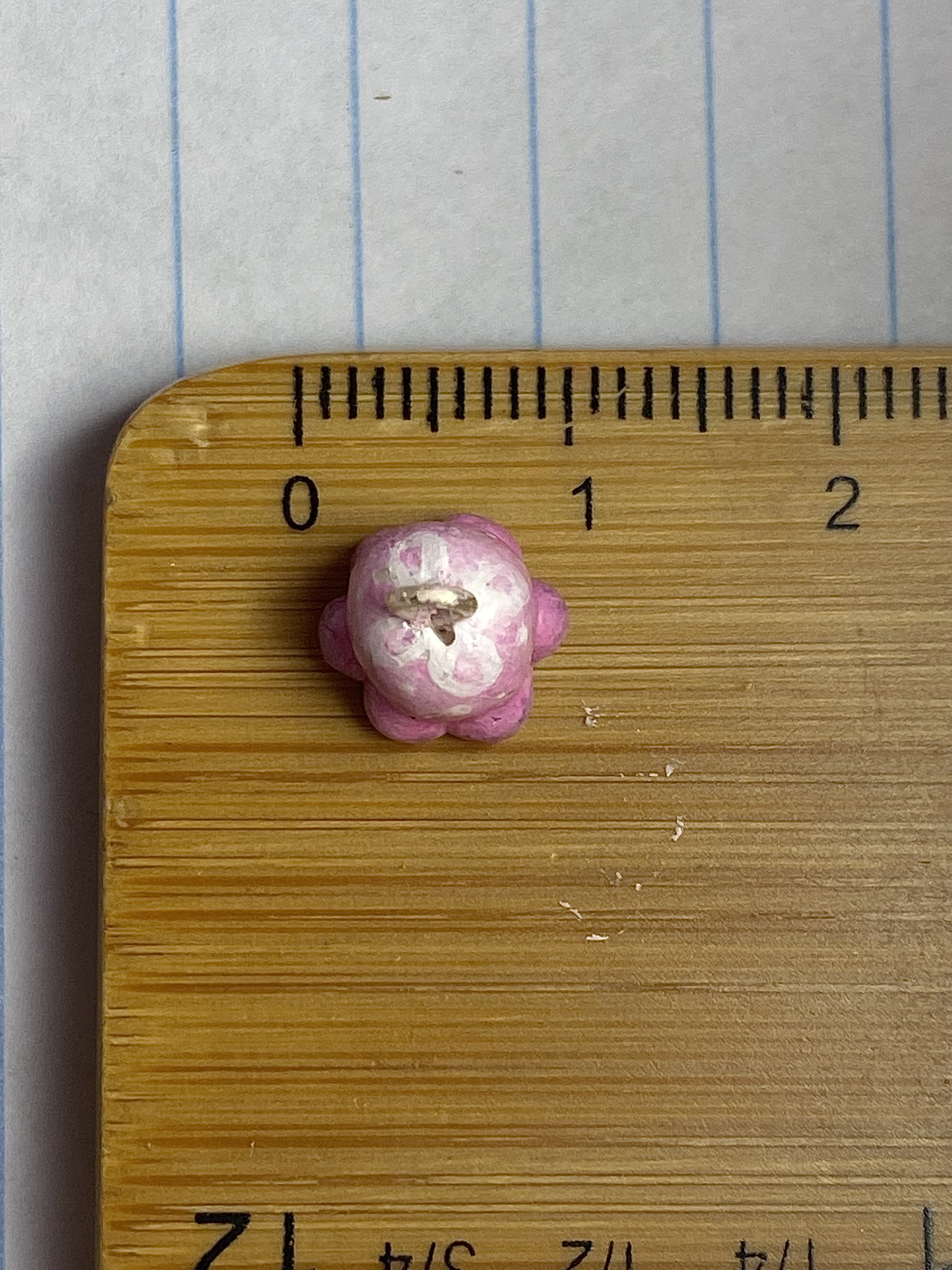 Made with air dry clay, acrylic paint, and modge podge ~1x1x1cm